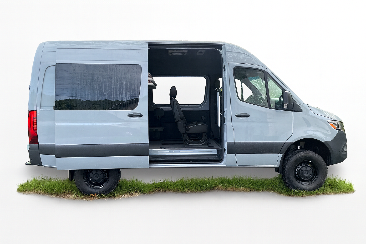 Built on a new and extremely well-equipped 2024 Mercedes-Benz Sprinter High Roof Crew 144 AWD, it seats 5 and sleeps 4+ comfortably, while keeping full cargo versatility thanks to its unique bunk lift system.